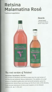 Cu un gust autentic și distinctiv, RETSINA MALAMATINA, vin de calitate superioară, este produsă din soiurile de struguri grecești Savatiano și Roditis și adăugarea unei cantități mici de rășină de pin.